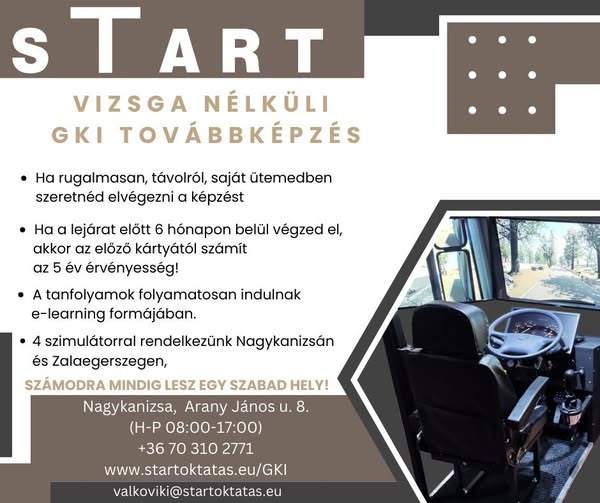 Tehergépkocsi-vezetői továbbképzés vizsgás - CTAutóbuszvezetői továbbképzés vizsgás - DT | 119 000 Ft |