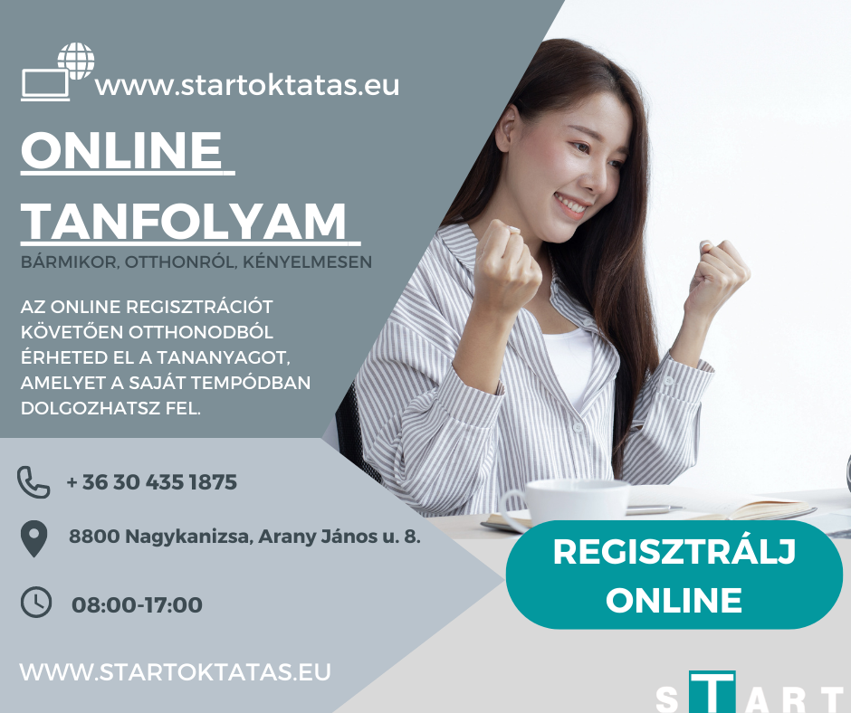 Amennyiben a képzést otthonról, digitálisan szeretné elvégezni, akkor online jelentkezést bátran otthonról is elkezdheti.