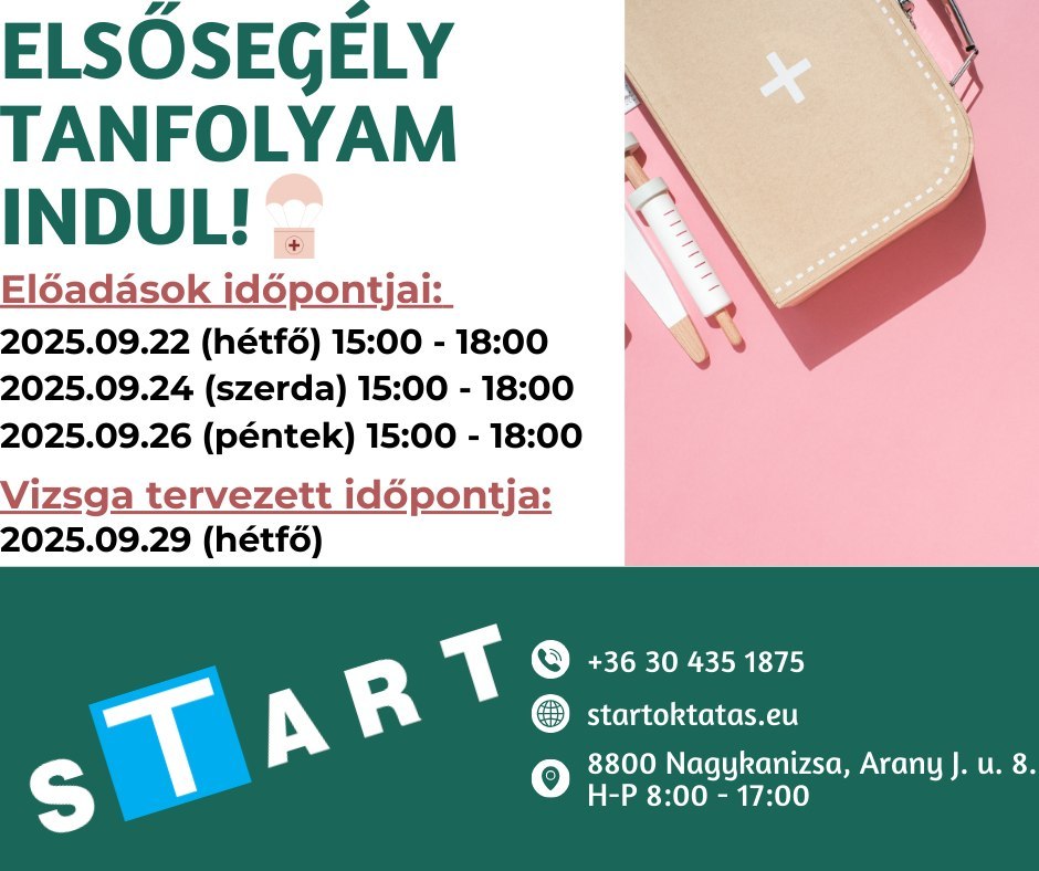 Következő ELSŐSEGÉLY tanfolyam előadásainak időpontjai: